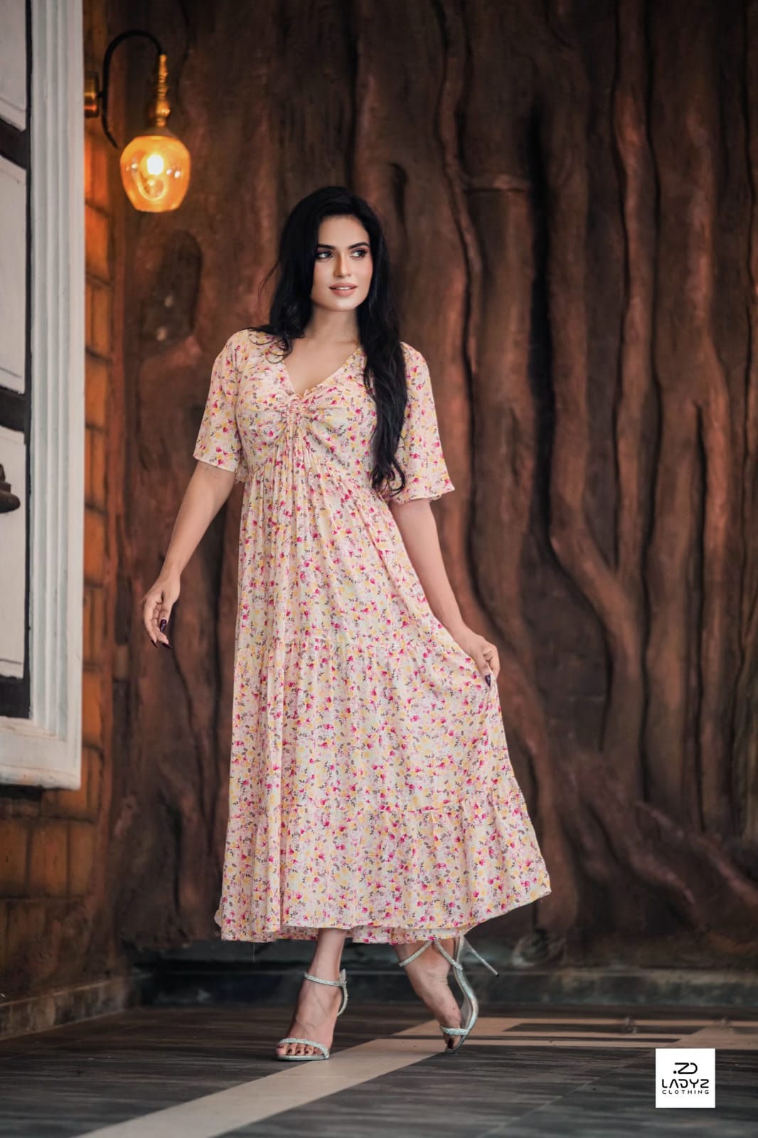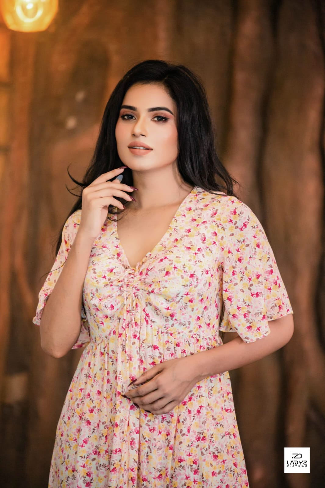 Floral Print Ruche Bust Long Dress SOLD OUT